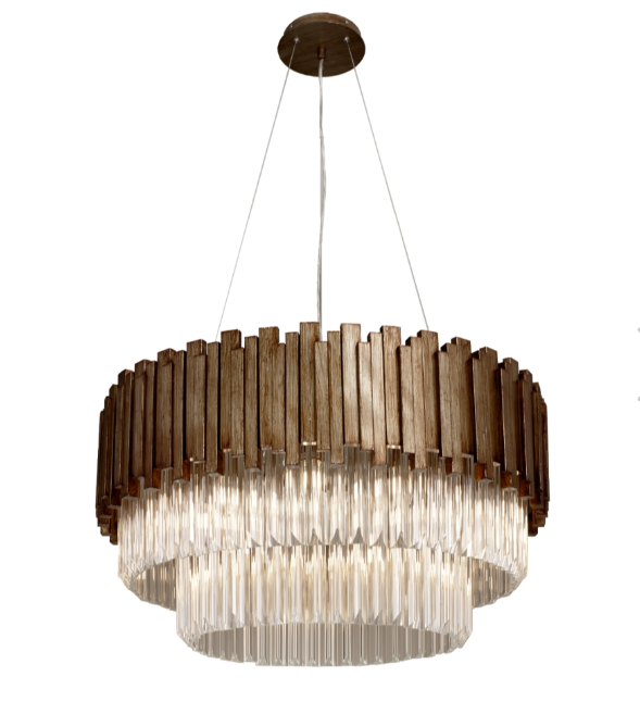 Skap en dramatisk og sofistikert effekt med Maive 3-etasjes lysekrone. Den antikke gullfinishen gir lampen en varm og luksuriøs glød, mens det øvre laget med strøkne gullstenger i ulike høyder skaper et kunstnerisk og iøynefallende uttrykk.