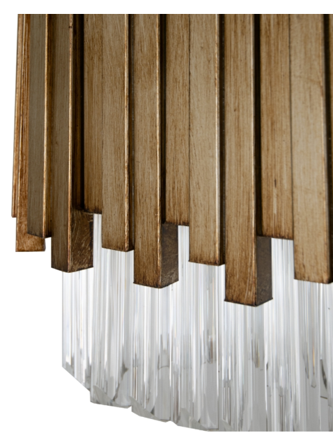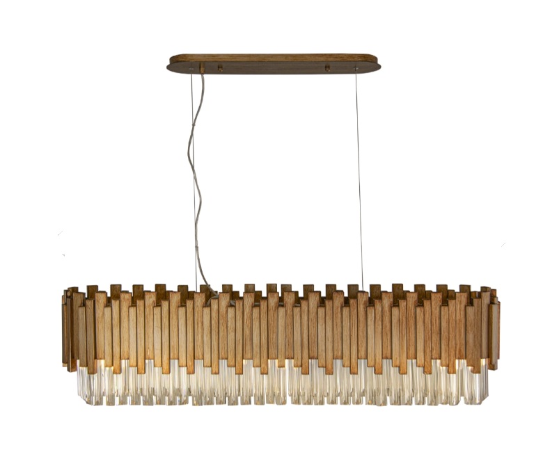 Maive lysekrone kombinerer klassisk eleganse med moderne, kunstnerisk design. Den har et øvre lag med strøkne gullstenger plassert i ulike høyder, som skaper et iøynefallende og dynamisk uttrykk. Lampen er laget av metall og glass med en antikk gullfinish som gir en varm og sofistikert glød, og passer perfekt i stue eller spisestue.
