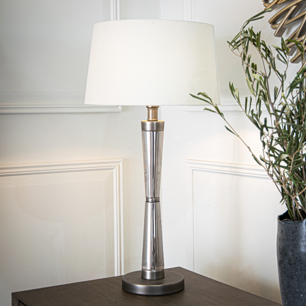 Nelle bordlampe i matt sort nikkel og krystall – med skjerm