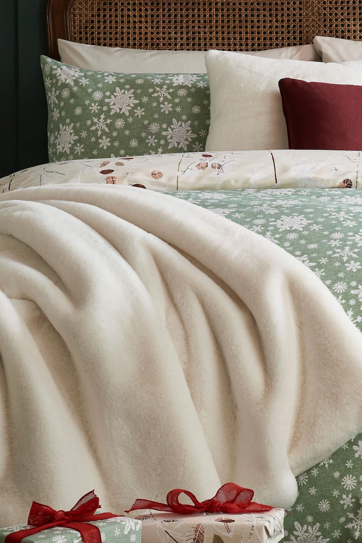 Newland-pleddet er laget av luksuriøs hvit fuskepels. Dette luksuriøse pleddet skaper et koselig og eksklusivt uttrykk i alle rom. Perfekt for koselige vinterkvelder.