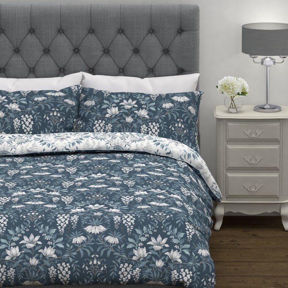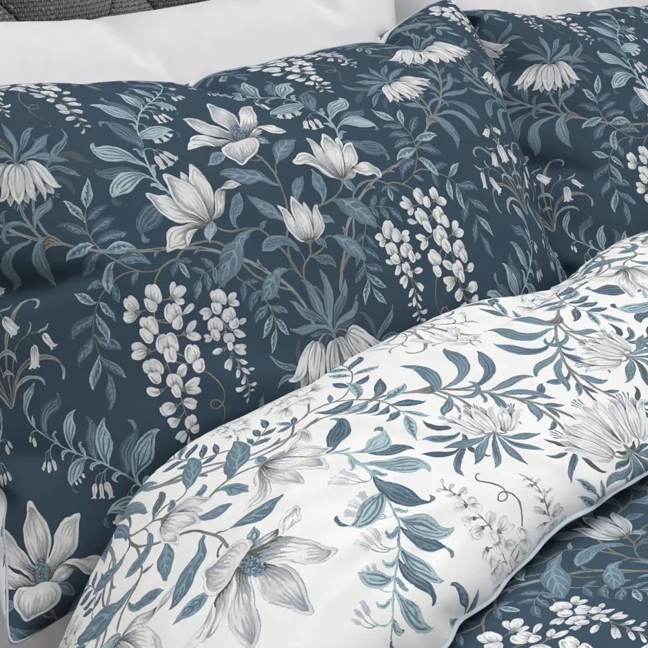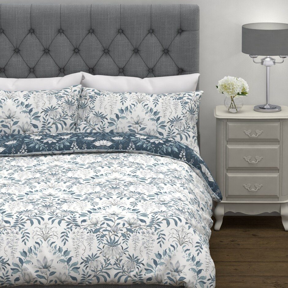 Parterre is a beautiful and sophisticated floral design featuring printed white flowers and swirling patterns of leaves. In our seaspray tones this design brings a modern feel to a vintage-style pattern, and this bedset is pure cotton for breathable comfort every night. A single bedset will come with one pillow cover, and all other bedsets come with two pillow covers.