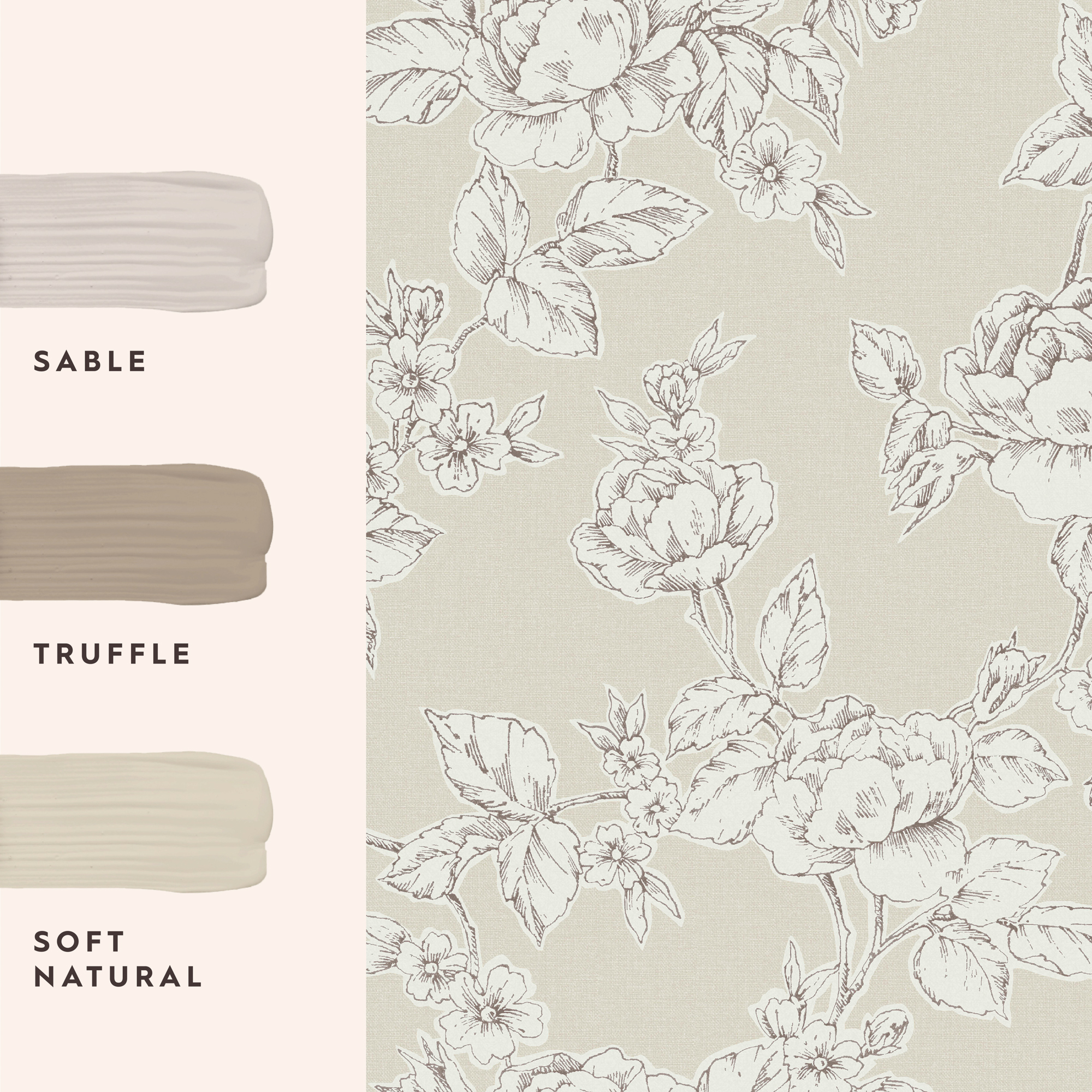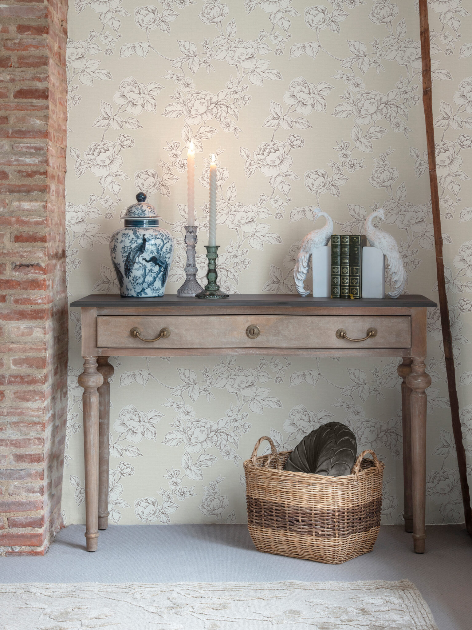 Pollington Roses-trykket ble opprinnelig lansert som en del av Laura Ashley Home Furnishings Collection, og er et stilisert trykk som illustrerer buktende rosestilkblomster.