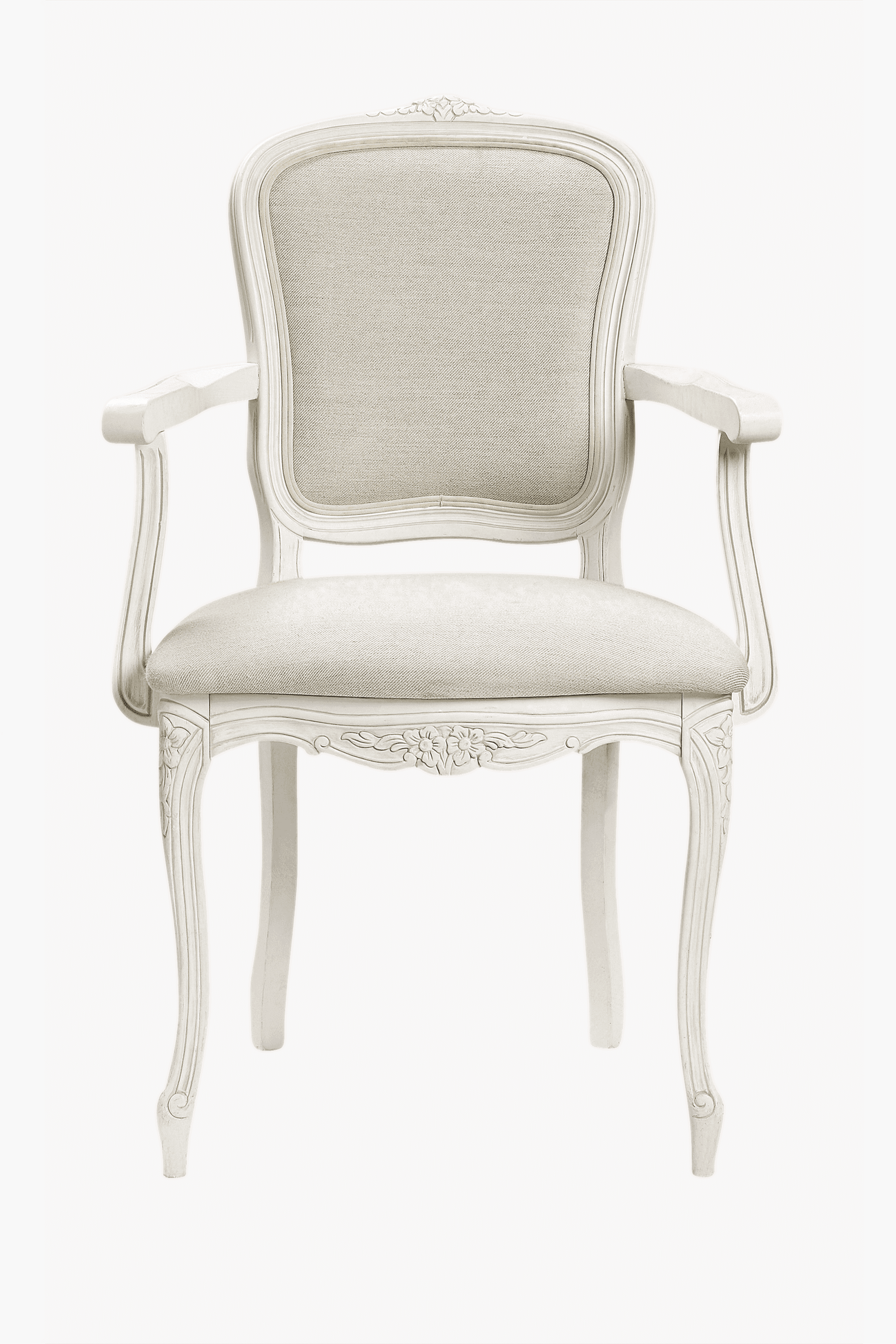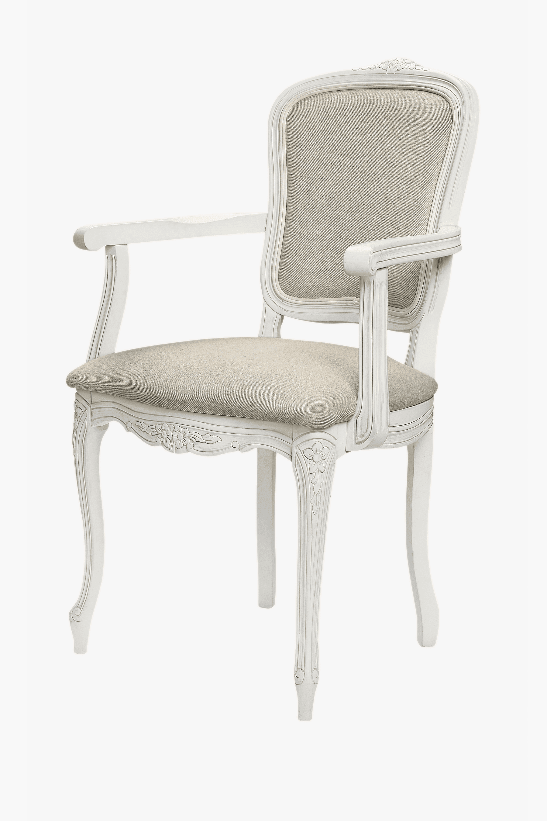 Laura Ashley Provencale Carver Chair er designet i beste tradisjon fra franske rokokkomøbler med skulpturerte ben og utskårne detaljer. Tillegget av armer gjør stolen utsøkt komfortabel og perfekt for en lang kveld ved middagsbordet. Seteunderlaget og ryggstøtten er trukket med Laura Ashley Linen Plain-stoff og den subtile malte finishen har delikat patina på utvalgte kanter og profiler.