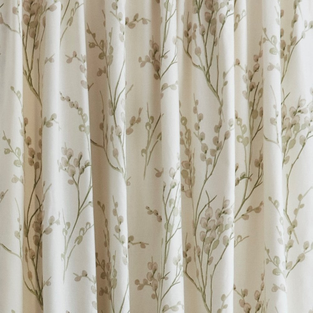 The elegant Laura Ashley Pussy Willow print is inviting. Delicate branches of budding pussy willow sprawl across these 100% cotton curtains. Fully lined and with a pencil pleat header to instantly enhance your interiors.
