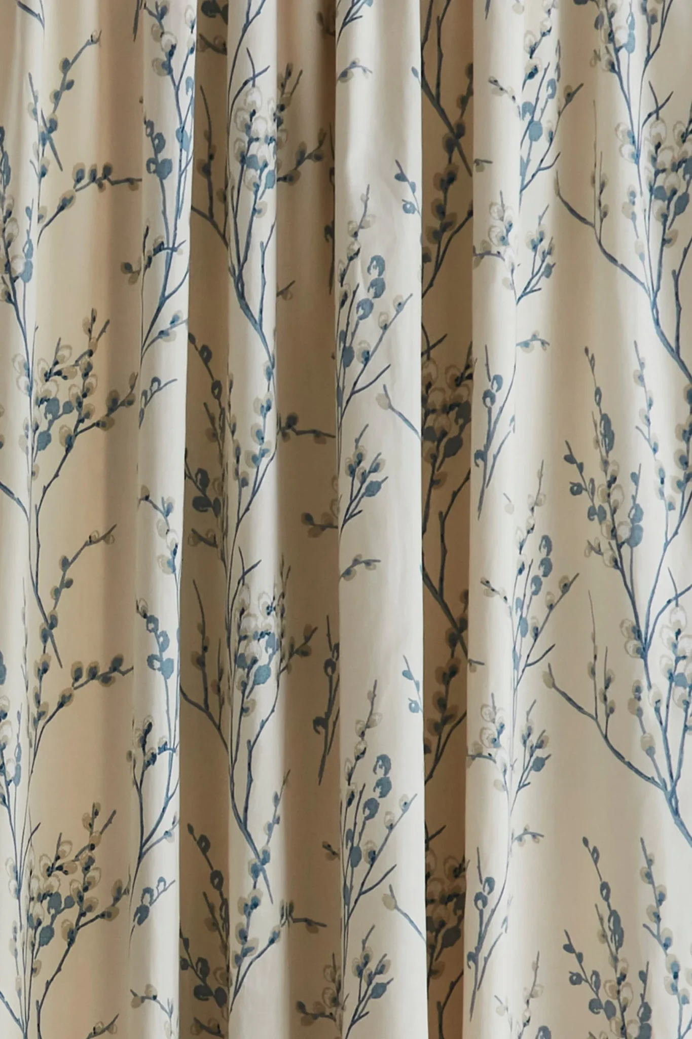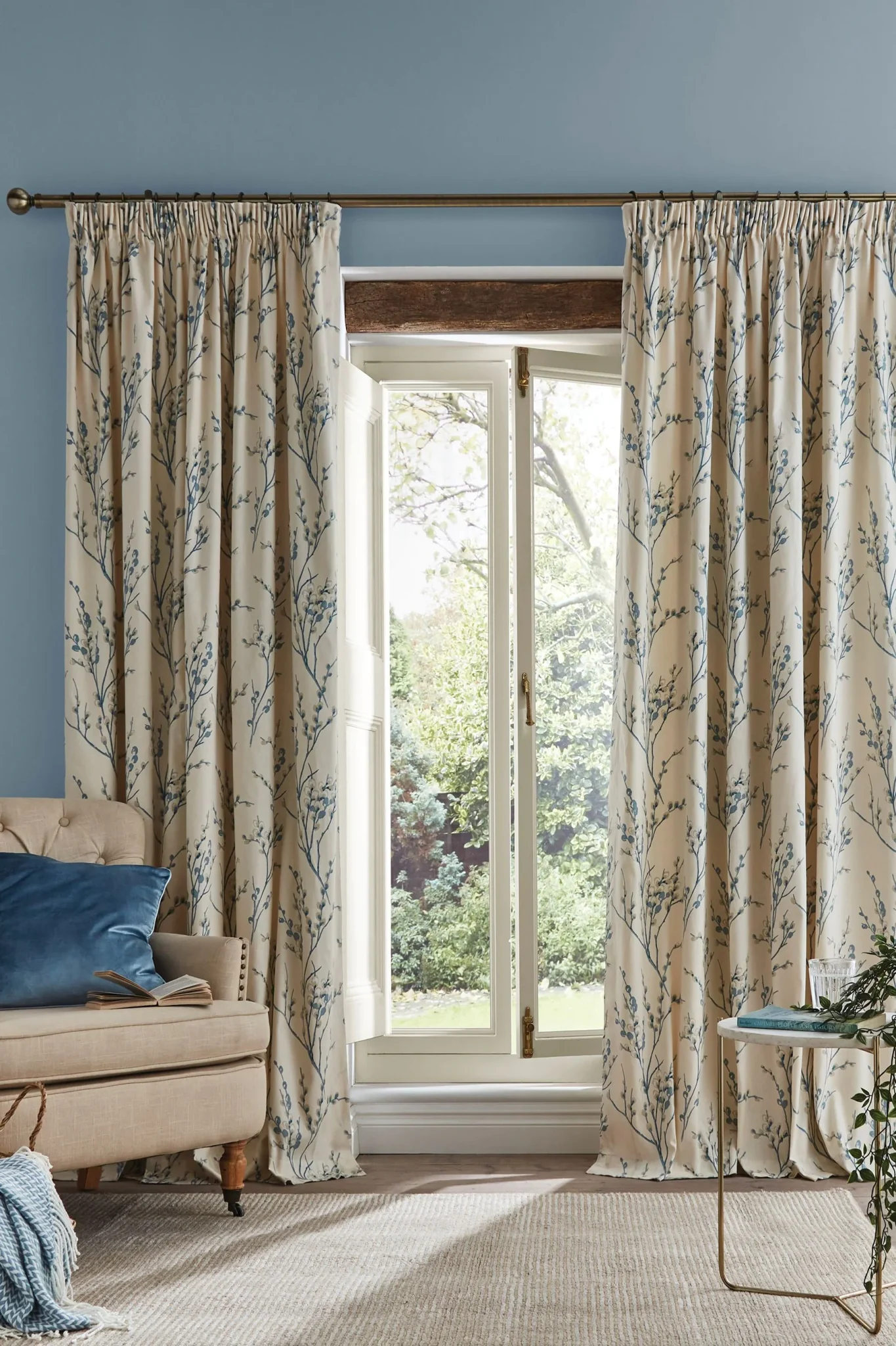 The elegant Laura Ashley Pussy Willow print is inviting. Delicate branches of budding pussy willow sprawl across these 100% cotton curtains. Fully lined and with a pencil pleat header to instantly enhance your interiors.