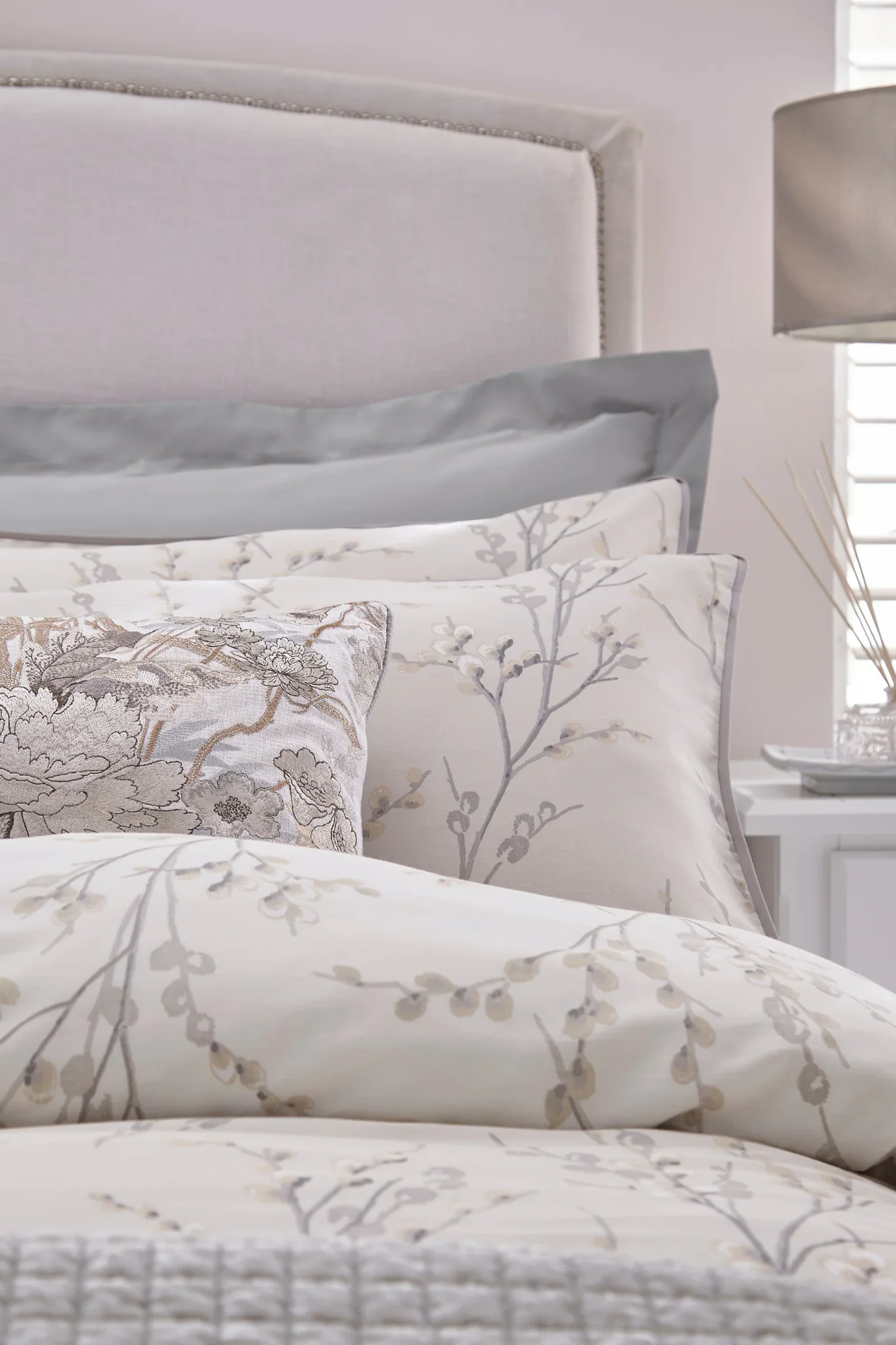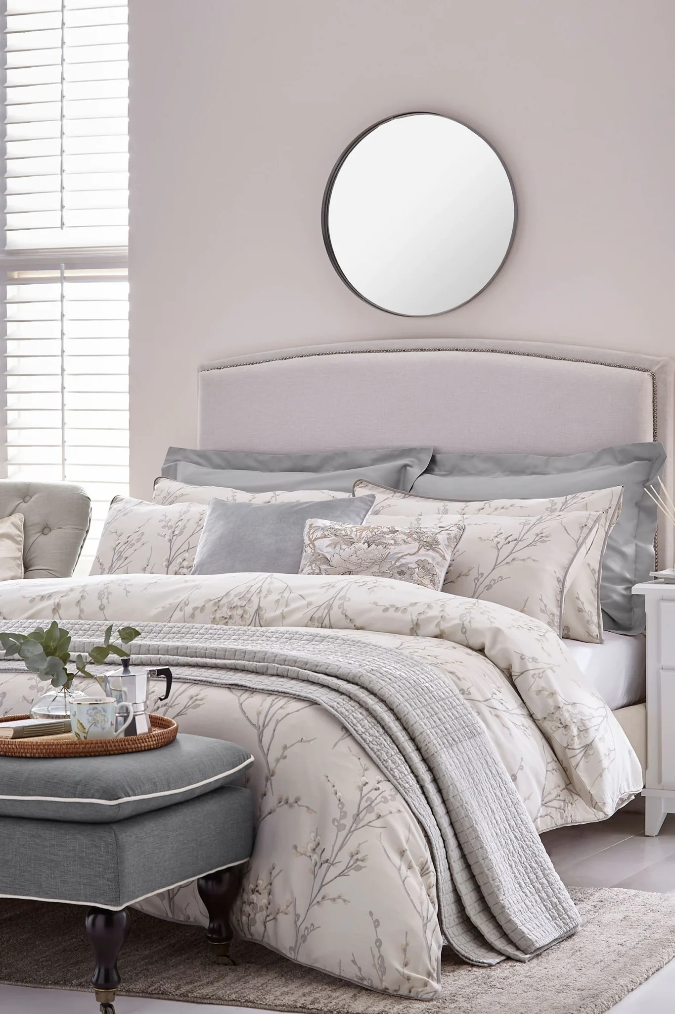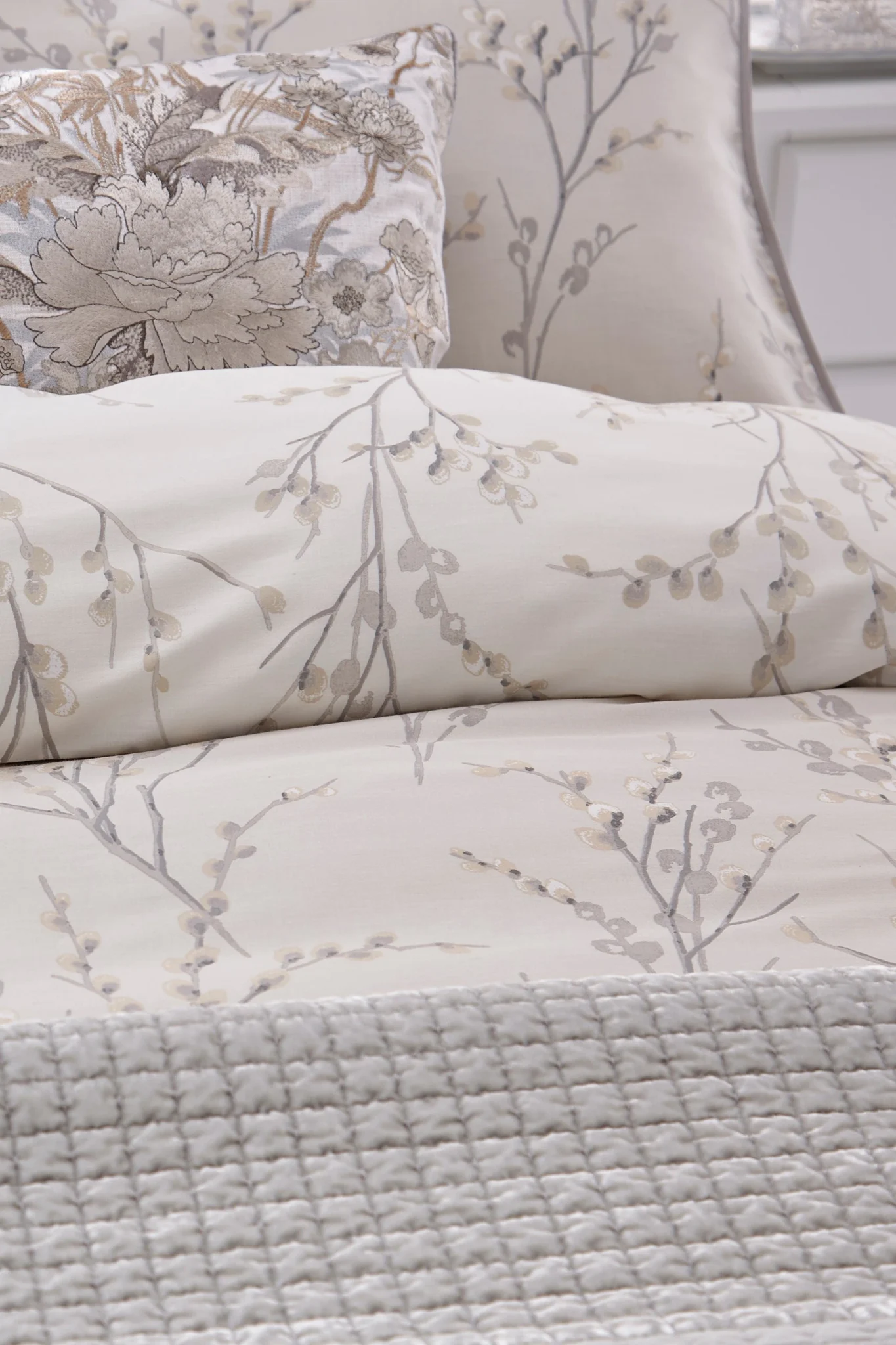 Our classic Pussy Willow pattern is delicate and full of springtime style, and now it is available in a delicate dove grey hue. This bedset is 200 thread count cotton sateen for breathable comfort and a soft touch, and it matches other pieces in our Pussy Willow range for a co-ordinated bedroom look. Finish your bedding with a matching bedspread in Dove Grey , and enjoy the timeless elegance of this beautiful print.