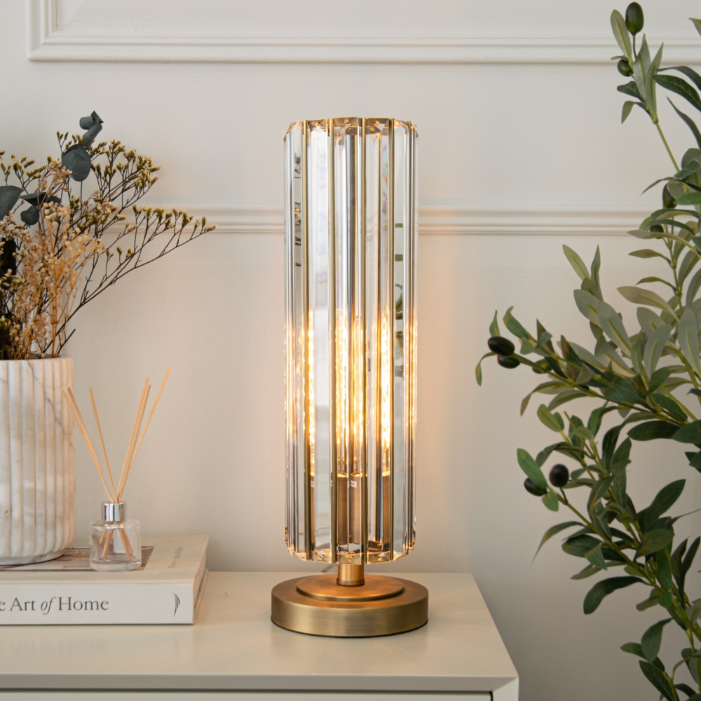 Reagan bordlampe er et stilfullt og iøynefallende innslag i ethvert rom. De glitrende krystallene reflekterer lyset på en vakker måte og skaper en varm og innbydende atmosfære – spesielt med en dekorativ lyspære (medfølger ikke).