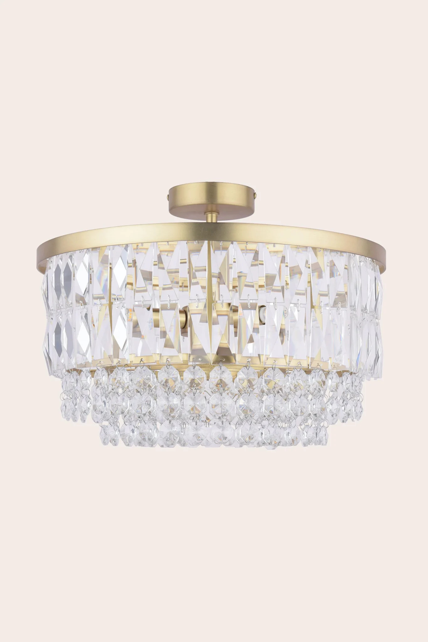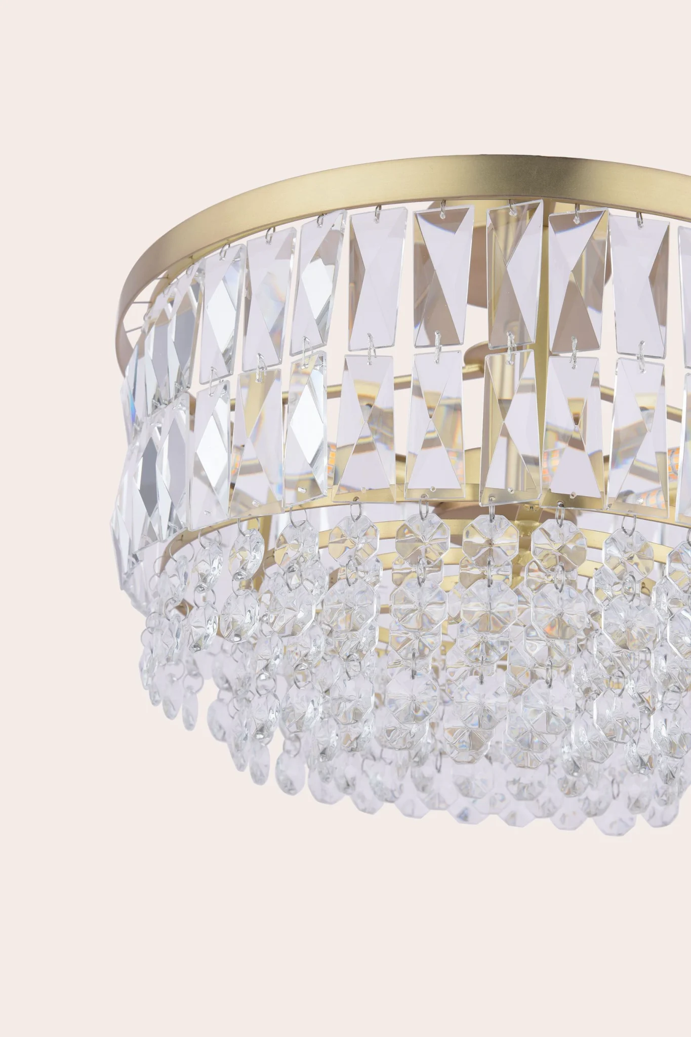 | Rhosill, taklampe i matt messing og glasskrystaller