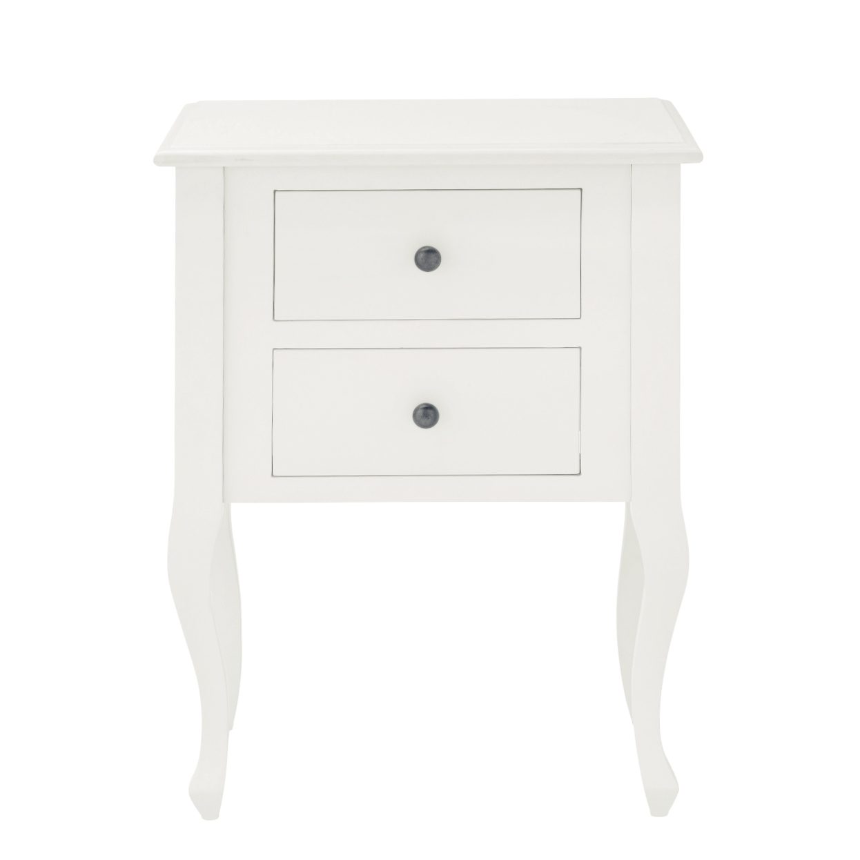 Rosalind, romantisk nattbord i bomullshvit med to skuffer