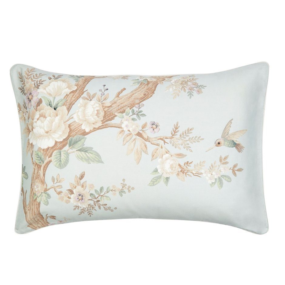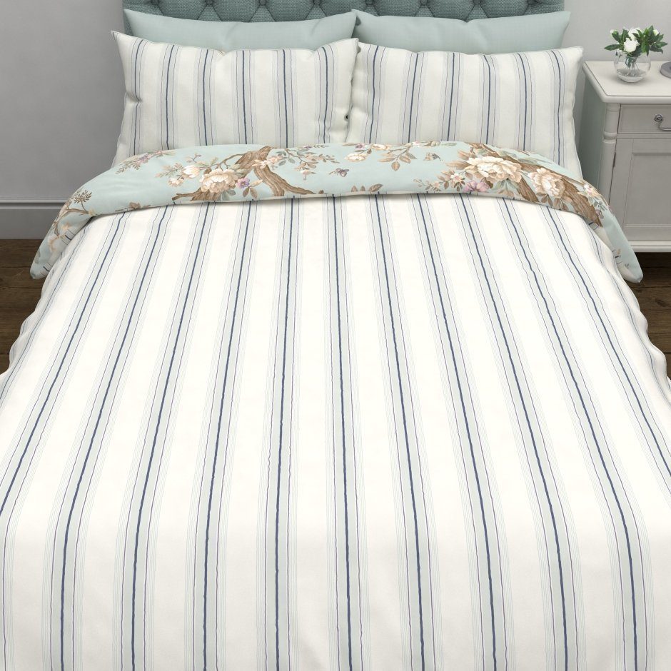 Dette dynetrekket, som er en del av sengesettet Belvedere,  kan du gjerne kombinere med gardiner i våre ensfargede stoffer i duck egg blått, slik som Bacall eller Villandry. Har du allerede tapetsert med tapeten Belvedere i duck egg blått, så vil dette være prikken over i`en.