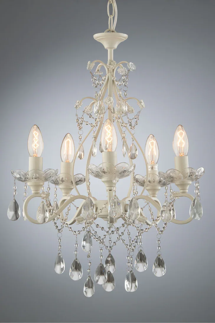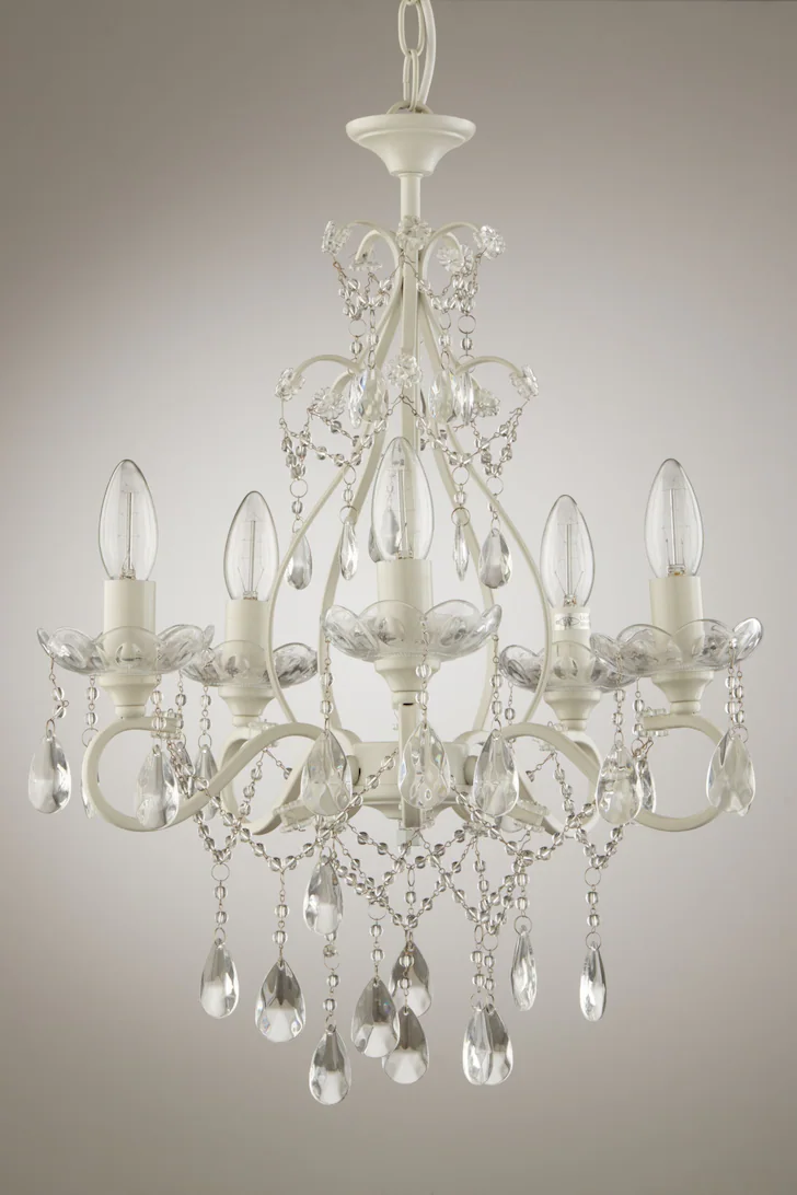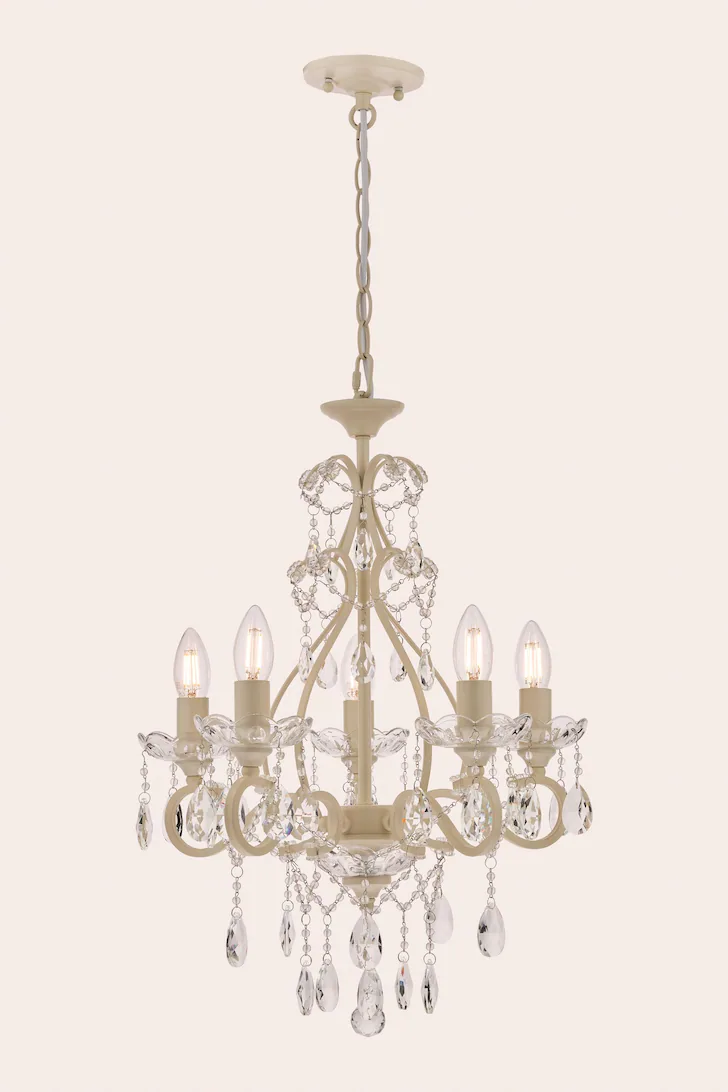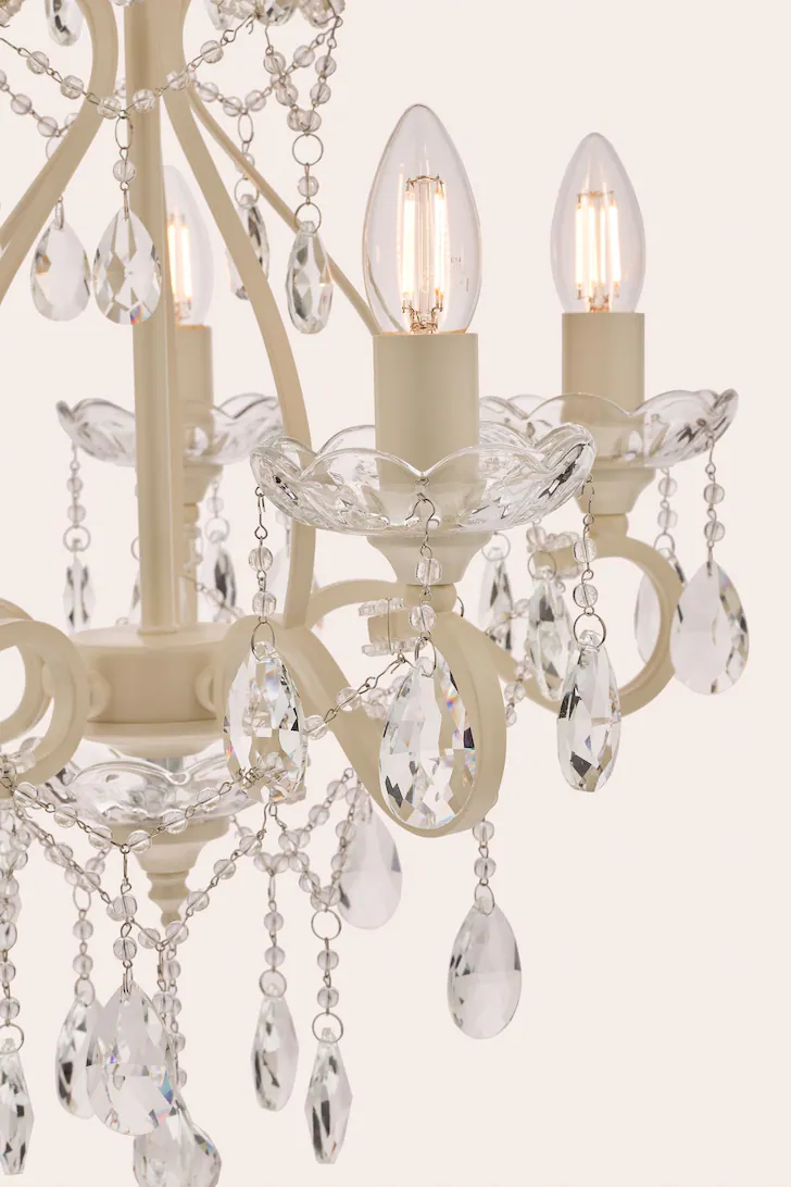Shamley, 12 armet lysekrone i krom med glassprismer
