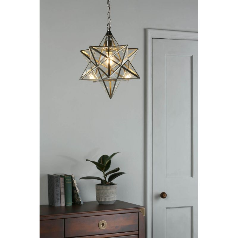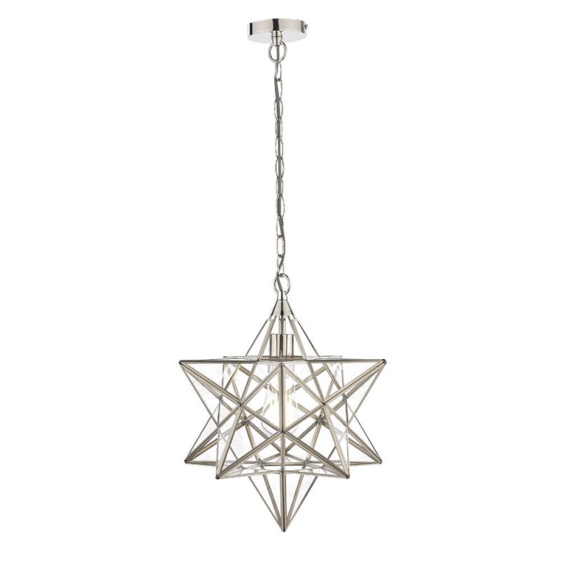 This glazed ceiling pendant light from Laura Ashley will star in your hallway or living room, especially if you are into the trends for boho or exotic. The Handmade, Small, triangular panels of clear glass are encased in thin metal strips with a bright, polished silver finish, forming a threedimensional star shape, suspended by a chain.