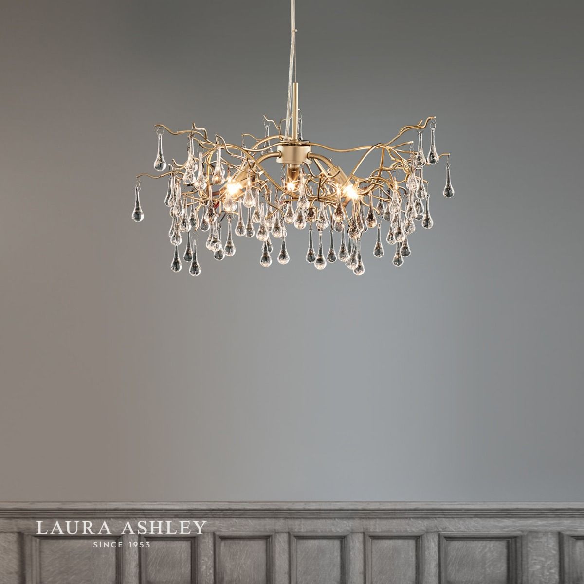 Som frosne regndråper på en gren er den lekre Willow lysekronen fra laura Ashely. En moderne krystallysekrone både elegant og organisk i uttrykket på samme tid. Den gir et lekent og raffinert inntrykk, med dråpene som henger der, og gjenskinnet fra belysningen. Krystall gir alltid et luksuriøst og eksklusivt inntrykk, også i en moderne variant med en lysekrone formet som en gren.