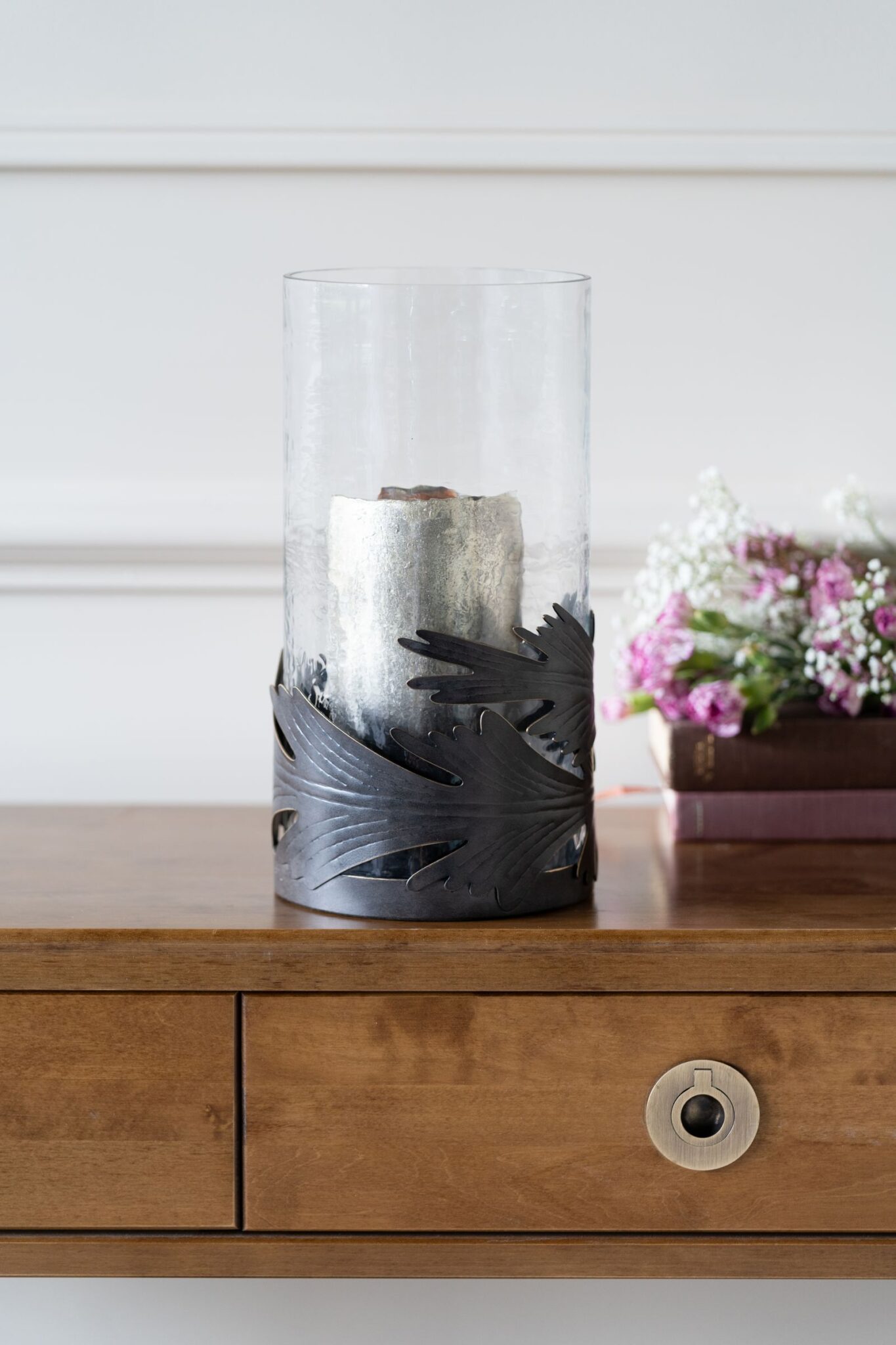 Winspear, eleganse fra Laura Ashley, en vakker lyslykt i glass med lekker bladdetalj i mørk antikk gull. En lyslykt som vil være like dekorativ som skaper av hygge i hjemmet.