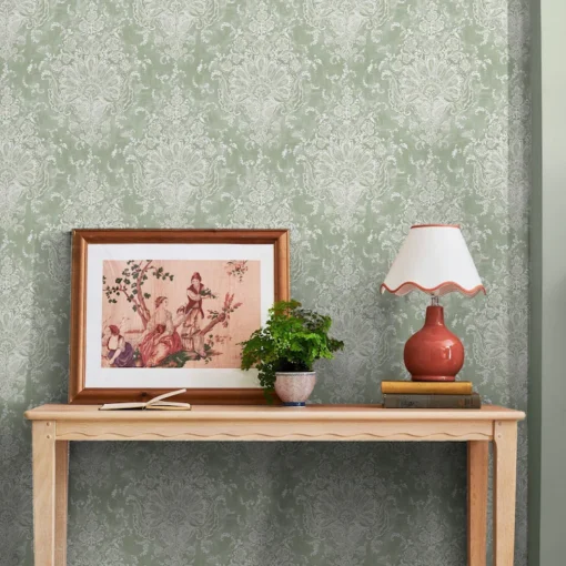 Pussy Willow, tapet med gåsunger i salviegrønt og off-white