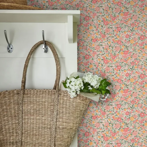 Sorrento, vegglampe i børstet krom og naturfarget skjerm