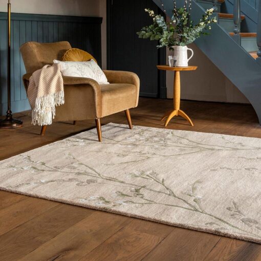 Coleby Petals, stilrent gulvteppe i kremfarget ull