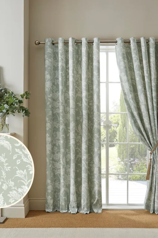 Lloyd, ferdigsydde gardiner med maljer i salviegrønt