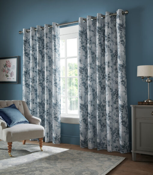 Lloyd, ferdigsydde gardiner med maljer i midnattsblått