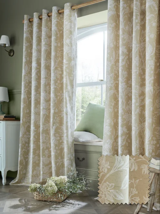 Lloyd, ferdigsydde gardiner med maljer i karamell