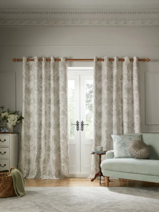 Tuileries i salvie grønn m/maljer Ferdigsydde gardiner